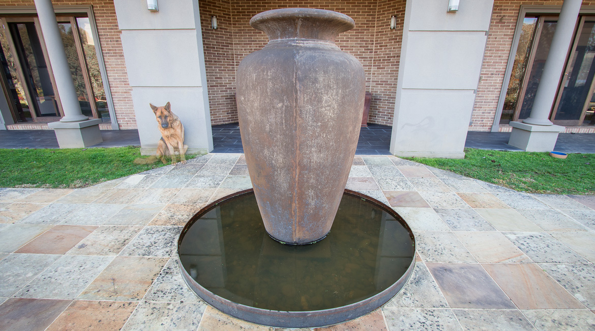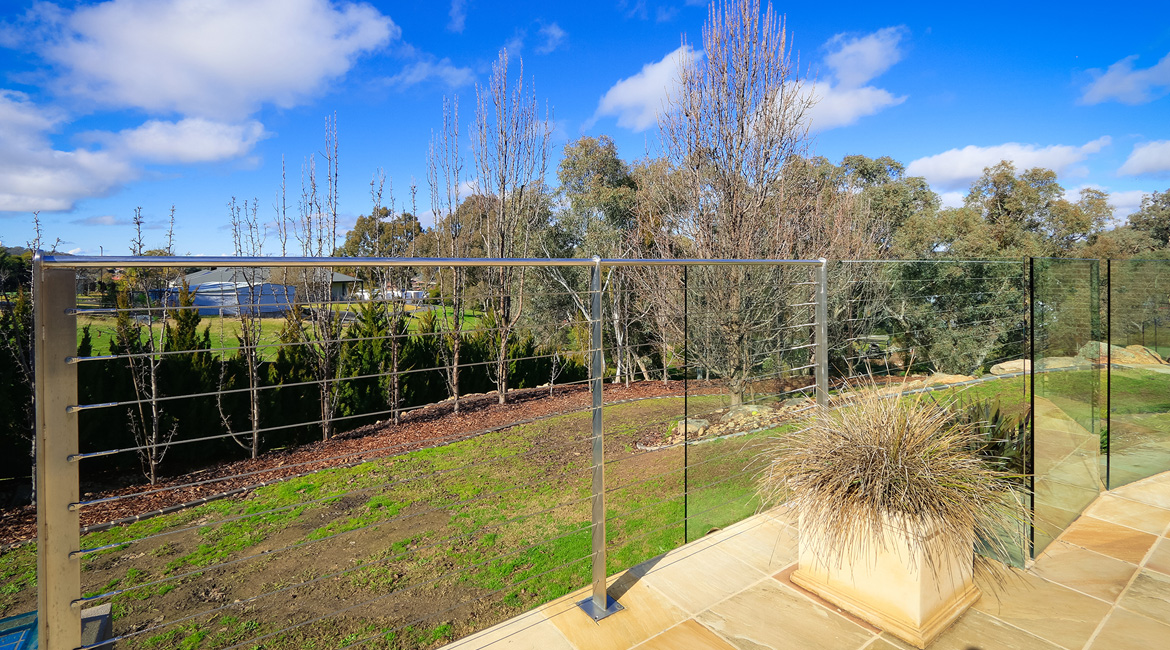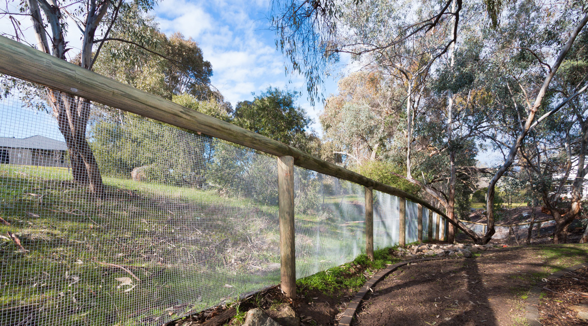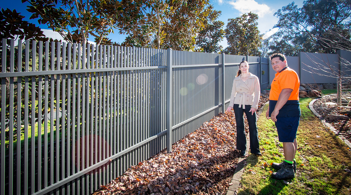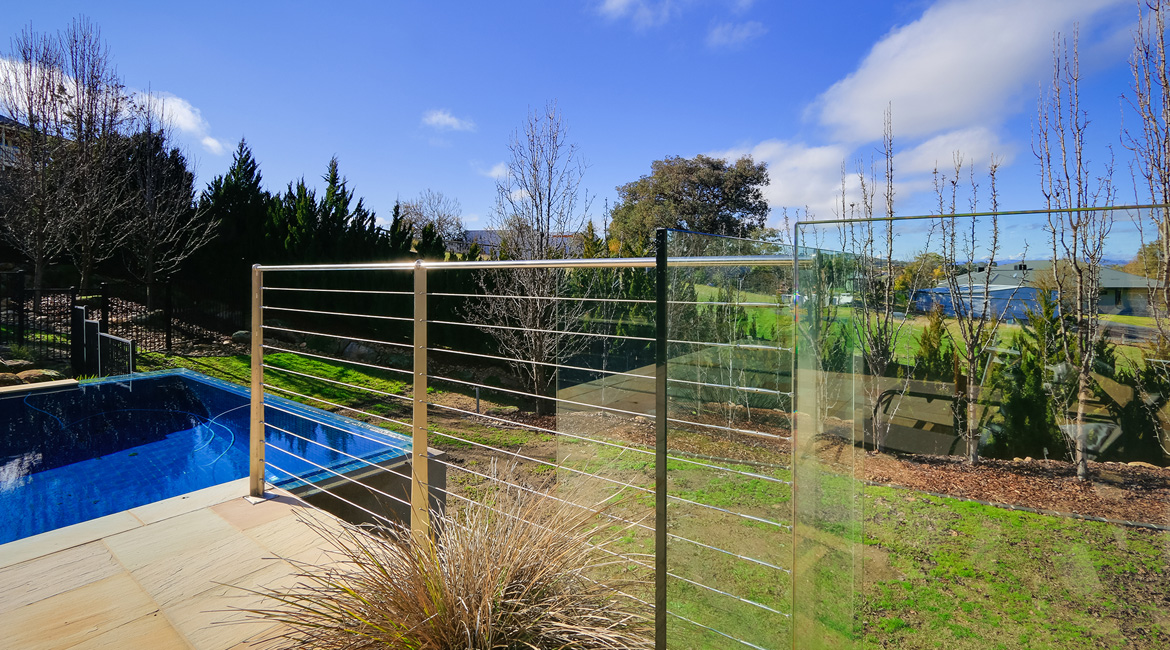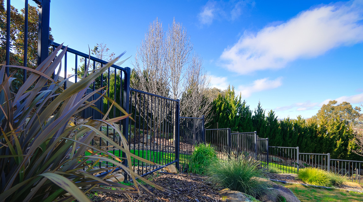 One of this family’s needs was for a cost-effective solution to block the view from the road that runs directly around the back of their house above them. They found that the cost of an acoustic wall was nearly a quarter of the price of a brick wall which suited their budget. Along with this, people from the road could see straight into their pool area. We were able to provide a 2.4m high acoustic wall that gave them privacy that exceeded their expectations. We were also able to provide them with custom-made galvanised steel powder-coated picket fencing in both curved and raked configurations and architecturally designed one-off electric swing gates. We also supplied and installed Stainless steel wire balustrading, glass pool fencing, aluminium flat top pool fencing, custom-made merbau slat timber and powder-coated galvanised steel-framed gates, rural kopper log and aviary mesh fencing and a custom-made steel rim around their pond water feature.